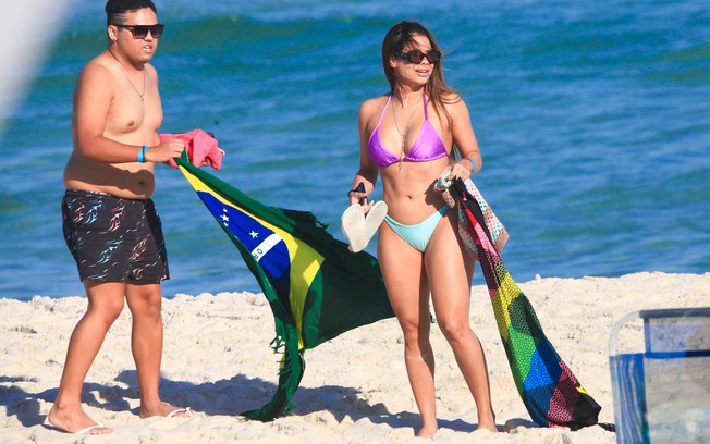A cantora Lexa aproveitou a tarde desta quinta-feira (13) para renovar o bronzeado e se refrescar na praia da Barra da Tijuca, no Rio de Janeiro. Com um biquíni roxo e azul, a artista foi clicada por paparazzis enquanto se divertia na areia e no mar ao lado de amigos.
